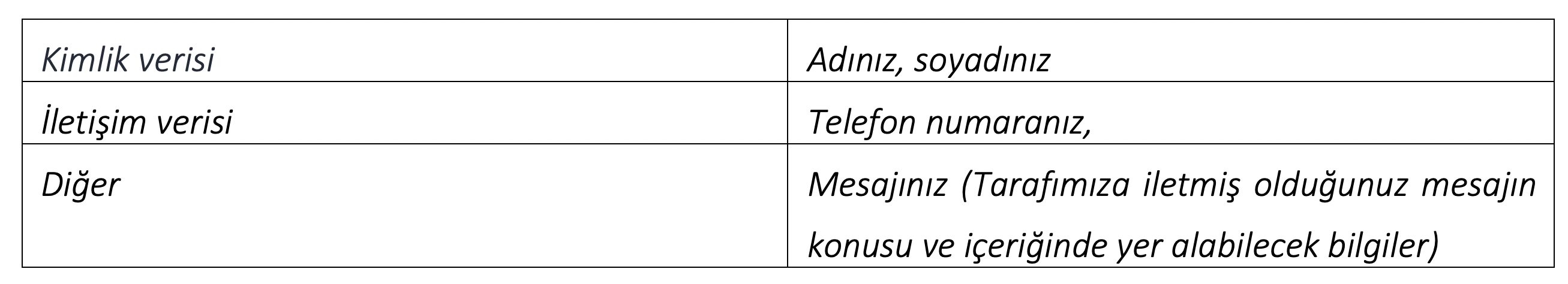WEB SİTESİ İLETİŞİM FORMU AYDINLATMA METNİ